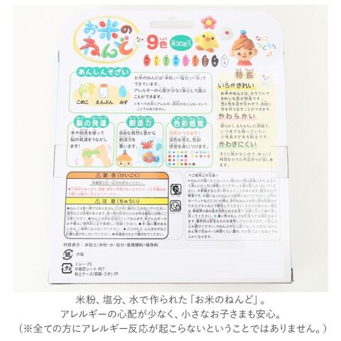 ◆色がキレイ、柔らかい、乾きにくい! 安心素材で作られた「お米のねんど」9色セット。(対象年齢3歳以上)