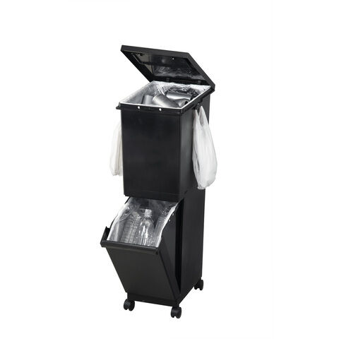新輝合成 ゴミ箱 55L 2段 ユニード 4分別 スリム ブラック(32L+23L) TONBO UNEED(トンボ ユニード) ダストボックス キッチン用 55SBK(TONBO) 【返品種別B】