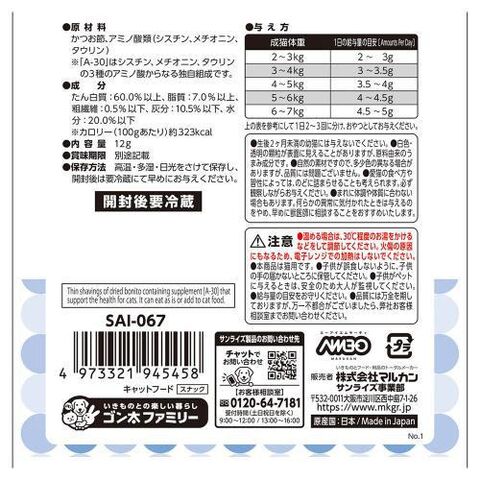 ■原材料:かつお節 、アミノ酸類 (シスチン、メチオニン、タウリン)