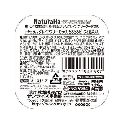 マルカンサンライズ ナチュラハ グレインフリー じっくりとろとろビーフ&野菜入り 100g ナチユラハGFビ-フ&ヤサイ100G 【返品種別B】