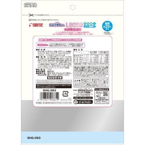 ■栄養成分:たん白質 14.0%以上、脂質 0.5%以上、粗繊維 9.0%以下、灰分 6.5%以下、水分 30.0%以下