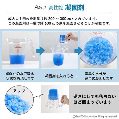 ◆凝固剤で水分を固めますので、使用後の水分モレの心配がありません。