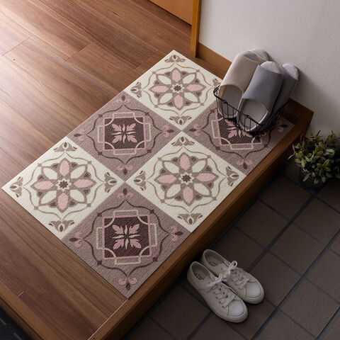 サンコー おくだけ吸着タイルマット モロッコタイル ベージュ柄 (アイボリー) KY-33 【返品種別A】
