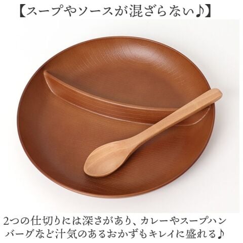 2つの仕切りには深さがあり、カレーやスープハンバーグなど汁気のあるおかずもキレイに盛れる♪
