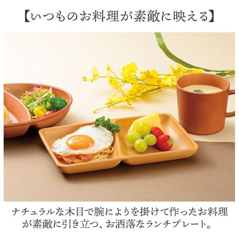 いつでもお家でカフェ気分が味わえる、ナチュラルで使いやすい木目風のテーブルウェア。季節の食材を盛り付けて、素敵なランチが演出できるのはもちろん、夜ごはんもおやつの時間も大活躍。