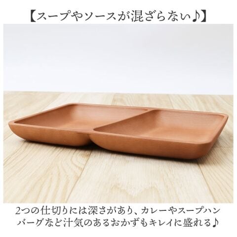 2つの仕切りには深さがあり、カレーやスープハンバーグなど汁気のあるおかずもキレイに盛れる♪
