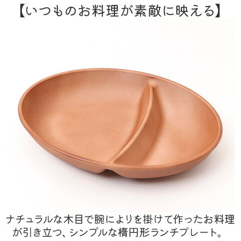 まるで欅のような優しい木肌が“おうち時間”を美味しく彩る・・・。「木目仕切付オーバルボウル」