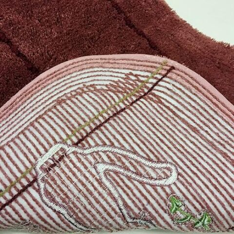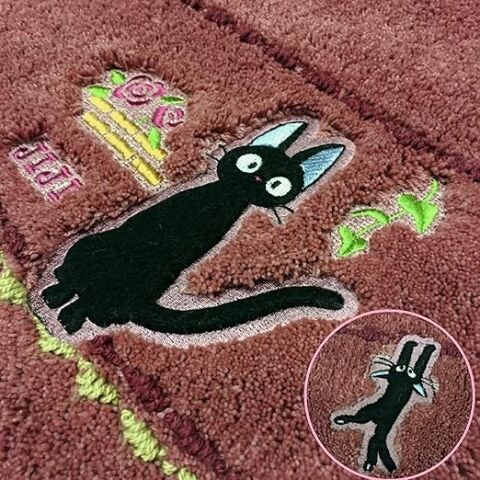 ◆落ち着いたトイレ空間を演出するダークなローズカラーに、黒猫ジジをワンポイントデザイン。