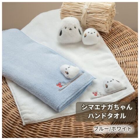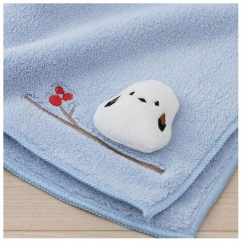 ◆シンプル&かわいい、シマエナガ立体マスコット付きハンドタオル