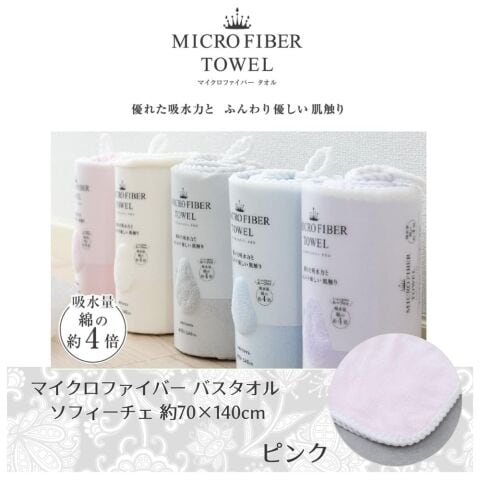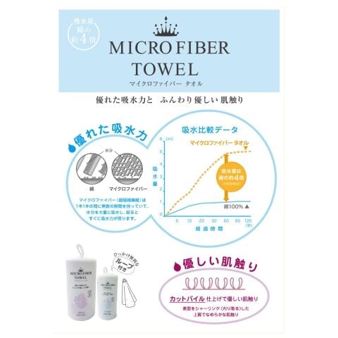 ◆優れた吸水力と、ふんわり優しい手触りのマイクロファイバーバスタオル