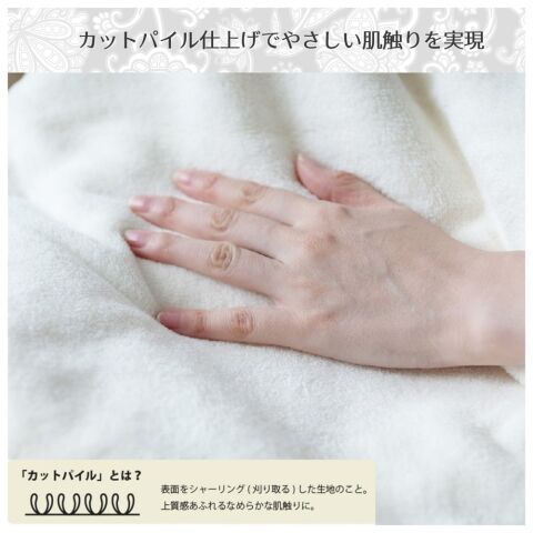 ◆パイル生地の表面をシャーリング(刈り取る)したカットパイル仕上げで上質感あふれるなめらかな肌触り