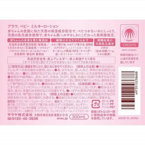 サラヤ アラウベビー ミルキーローション 本体 300mL アラウベビ-ミルキ-ロ-シヨン300 【返品種別A】