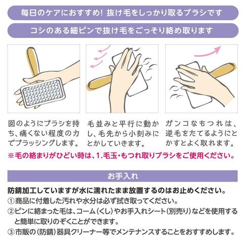 2、ピンに絡まった毛は、コーム(くし)やお手入れシート(別売)などを使用すると簡単に取り除くことができます。