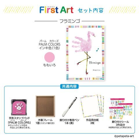 木製フレーム:148×210mm(A5サイズ) - セット内容:手形スタンプパッド(PALM COLORS)1色、木製フレーム1面