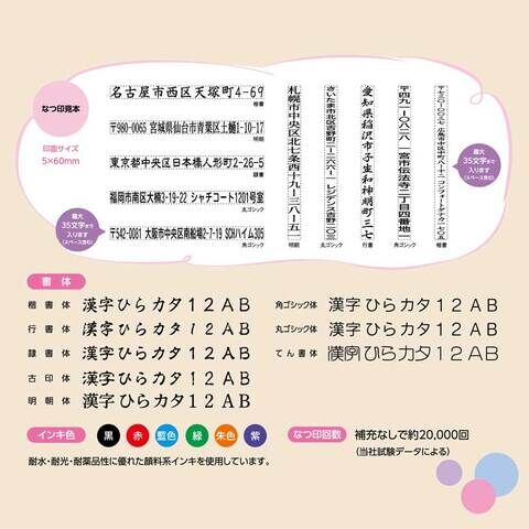 • なつ印回数:補充なしで約20000回(シヤチハタ社試験データによる)