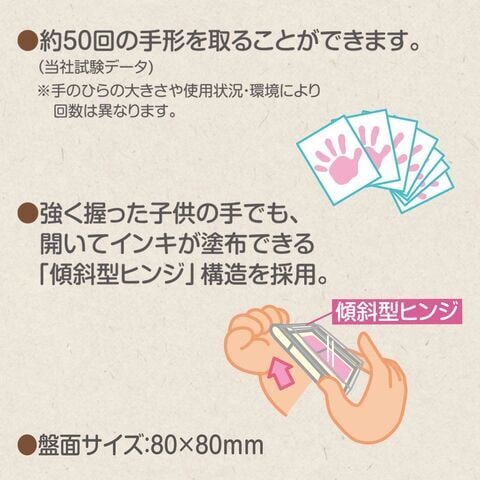 ◆強く握った子供の手でも、開いてインキが塗布できる「傾斜型ヒンジ」構造を採用。