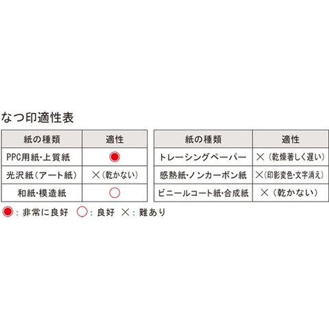 ◆独自のインキコントロール技術と盤面表布のインキ吸収力の向上により、軽い力でもくっきり色濃く捺すことができます。キレイななつ印回数が約8500回なつ印できるのでとても経済的です。