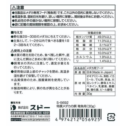 スドー 特撰メダカの餌 稚魚用 30g トクセンメダカノエサチギヨヨウ30G 【返品種別A】