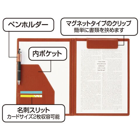 - A4-E、内ポケット付(名刺スリット2カ所)、ペンホルダー付
