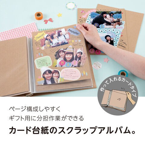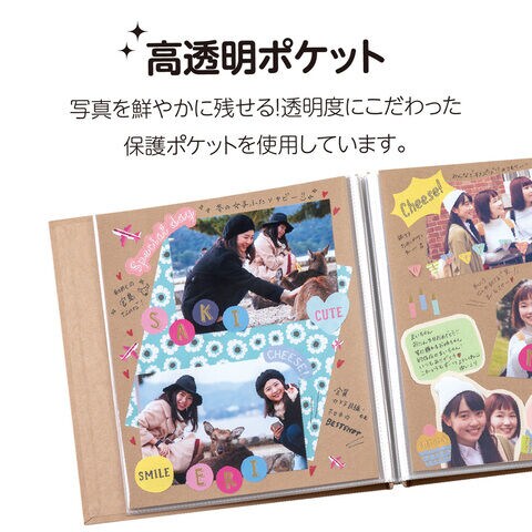 ◆高透明ポケットに、丈夫な厚口の台紙が1枚ずつ入った、スクラップ・デコレーションに最適なアルバム。