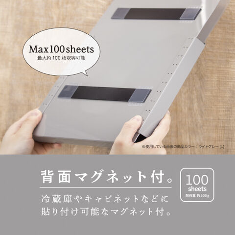 ◆A4ワイド設計により、クリアファイルや雑誌などのA4変形サイズも収容可能。