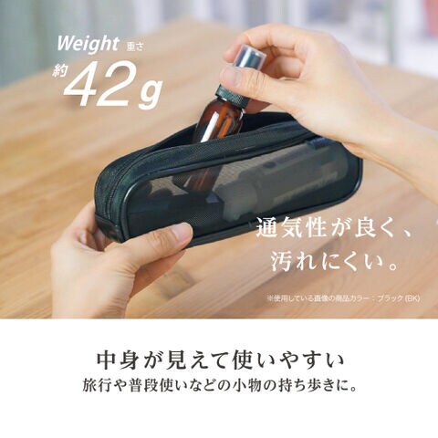 ◆質感が良く、軽くて使いやすい。スリムなボックスタイプのメッシュポーチ。