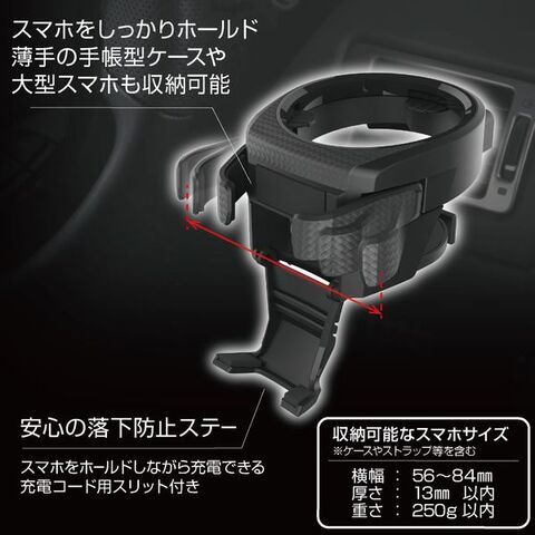 ◆ドリンクとスマホを同時置きできるドリンクホルダーです