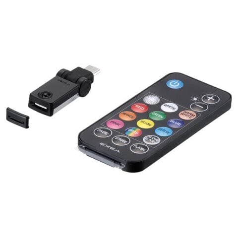 8色の単色点灯や点滅パターンをリモコンで操作できるUSB-Cポート用のLEDライトです。