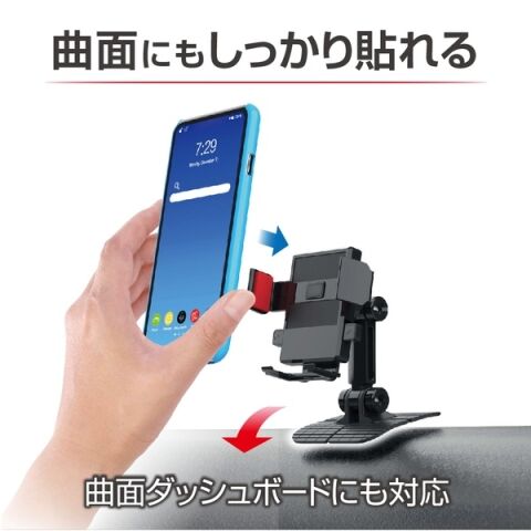 ◆貼付けベースは軟質素材なので、ダッシュボードの曲面などに沿って貼付け可能。
