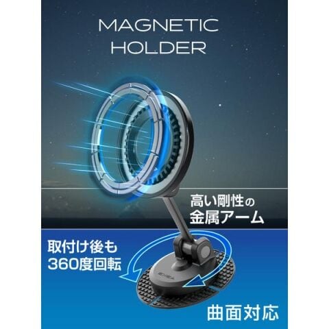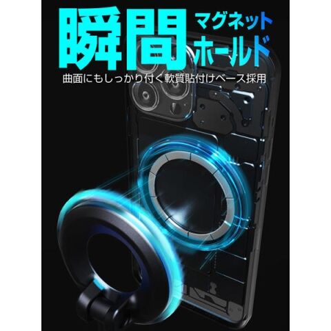 超強力マグネットにより、スマホがワンタッチで着脱できるホルダーです。
