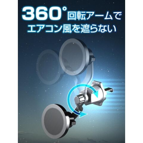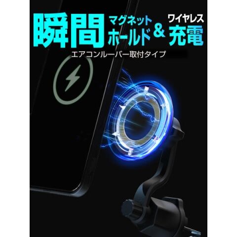 エアコンルーバー取付けタイプのワイヤレス充電機能付きマグネットホルダーです。