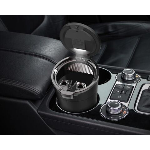 車内での使いやすさにこだわったソーラーライト付き多機能灰皿です。