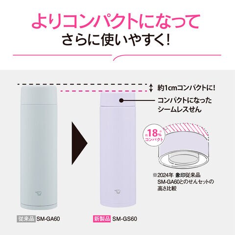 約18%コンパクトになったシームレスせん(2024年象印従来品SM-GA型とのせんセットの高さ比較。)