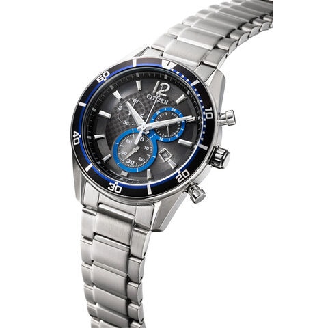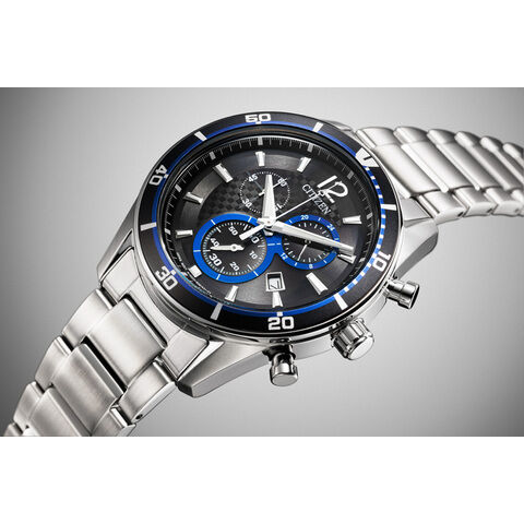チェッカーフラッグ柄の入ったブラックダイヤルに、ブルーのポイントカラーを施し、スポーティさを表現しました。