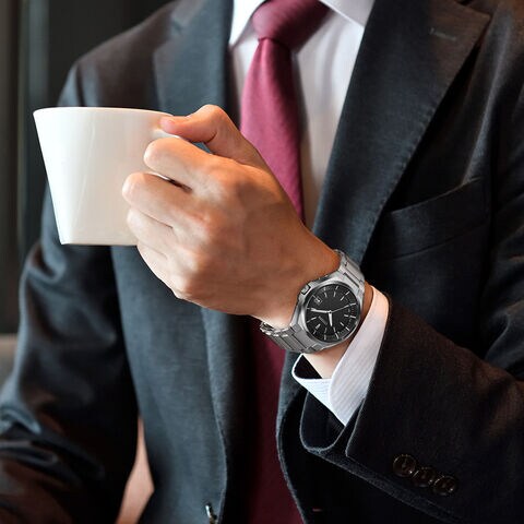 すっきりとした視認性の良い文字板デザインに、シャープなデザインが魅力の薄型ソーラー電波時計。