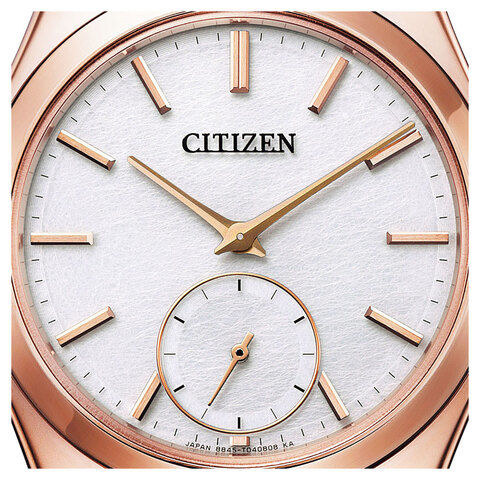 ホワイト文字板は、エコ・ドライブ ワン初となる「土佐和紙典具帖紙(とさわしてんぐじょうし)」を採用。光を受けて角度によって表情を変える和紙独特の風合いを楽しめます。