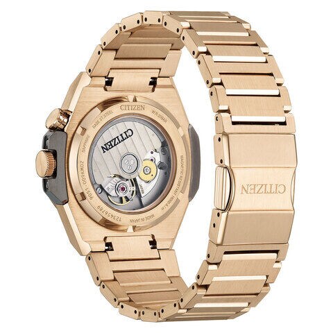 文字板のオリジナルパターン、テーパーをかけたメタルバンドが、スポーティな表情とともに都会的でラグジュアリーな印象を際立たせます。