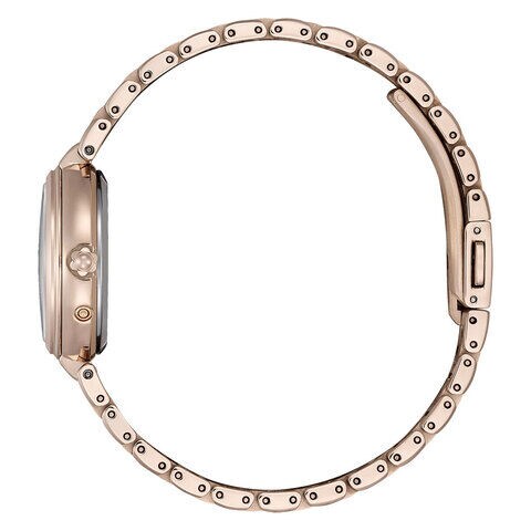 曲線を多用した柔らかな印象のケース、ミラー加工とヘアライン加工を織り交ぜた多列バンドを用いたブレスレット感覚の美しいデザインが、きらびやかな印象を与えます。