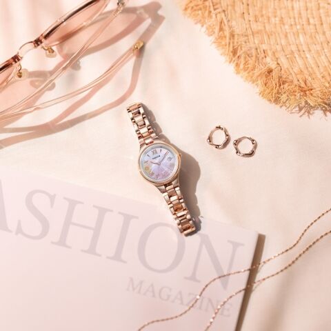 ・初夏の夕空をテーマにした限定モデルです。白蝶貝の文字板にピンクのグラデーションをあしらい、季節感あふれる美しい景色を表現しました。