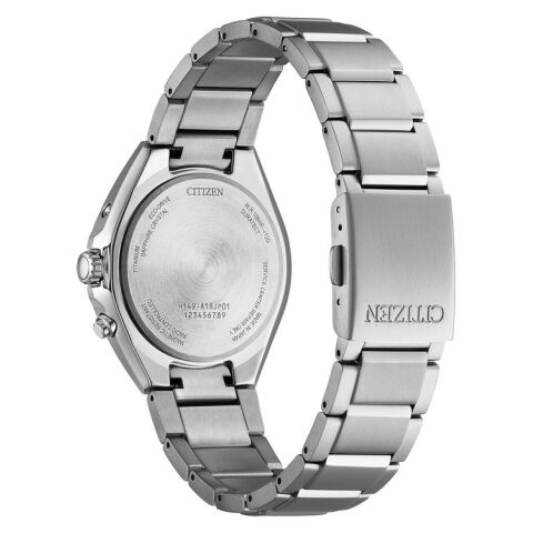 ・ケースとバンドにスーパーチタニウムTMを採用した、ベーシックな3針タイプのエコ・ドライブ電波時計。手首が細めの方にもフィットしやすい37.5mmケースです。