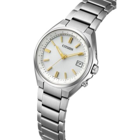 ・ケースとバンドにスーパーチタニウムTMを採用した、ベーシックな3針タイプのエコ・ドライブ電波時計。手首が細めの方にもフィットしやすい37.5mmケースです。