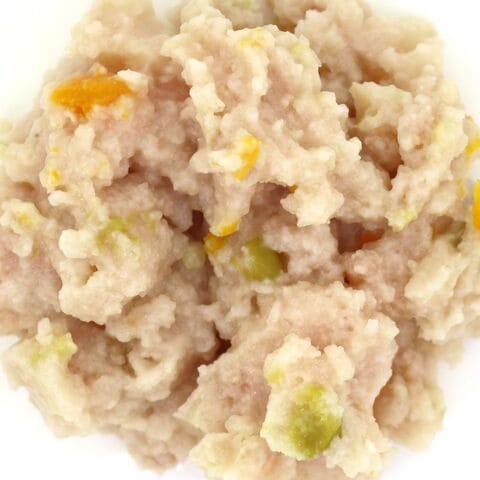 ■原材料:肉類(はかた地どり胸肉、チキンエキス等)、穀類(白米、もちきび、もち粟、丸麦、ひえ、アマランサス)、野菜類(にんじん、グリ‐ンピ‐ス)、魚軟骨抽出物(コンドロイチン含有)、増粘多糖類、ミネラル類(カリウム)、ビタミン類(A、B1、B2、B6、B12、C、D、E、ナイアシン、パントテン酸、葉酸)、グルコサミン