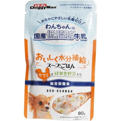 ドギーマンハヤシ わんちゃんの国産低脂肪牛乳スープごはん ササミと緑黄色野菜入り 80g ギユウニユウSPゴハンササミV80G 【返品種別B】