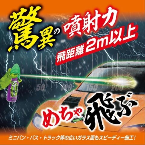 驚異の噴射力! 飛距離2m以上で、豪雨時でも窓ガラスに届き瞬時に撥水。