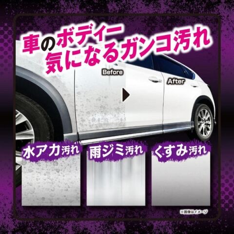 マイクロ微粒子パウダーにより塗装表面に付着したガンコな水アカや雨ジミ、くすみなどの原因となる油分を含んだ汚れを徹底的に除去し、
