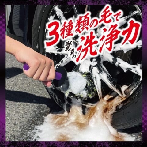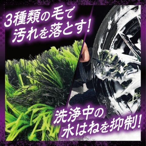 3種類の毛を混合させることによりホイールの内側に付着した細かい砂や泥汚れ等を掻き取り、しっかり落とします。