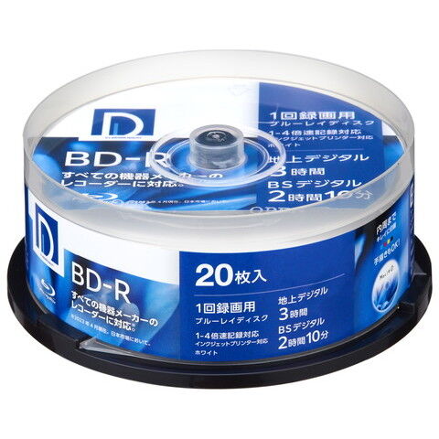 D’SQUALITY 4倍速対応BD-R 20枚パック 25GB ホワイトプリンタブル BR25DP.20SP 【返品種別A】