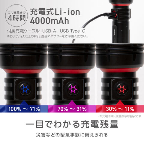 - 充電池容量:DC3.6V 4000mAh