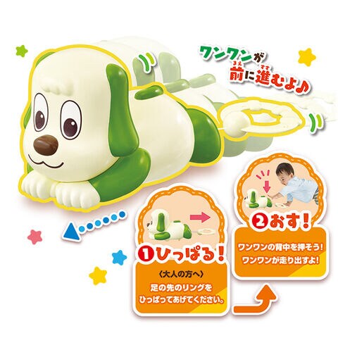 発売から13年のロングセラー、アンパンマンの「ハイハイでおいかけっこ」をワンワンで商品化しました。