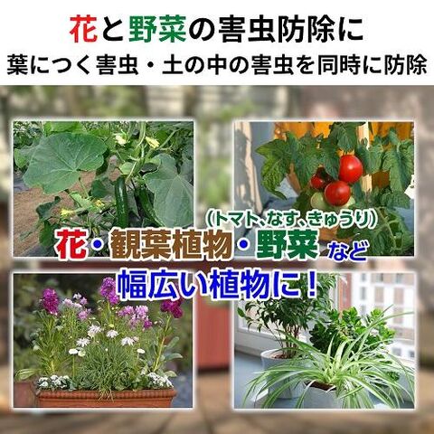 ◆花と野菜の害虫防除に、葉につく害虫・土の中の害虫を同時に防除。